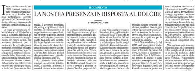 “Il senso del Giorno del Ricordo. Un appuntamento importante per la coscienza nazionale”