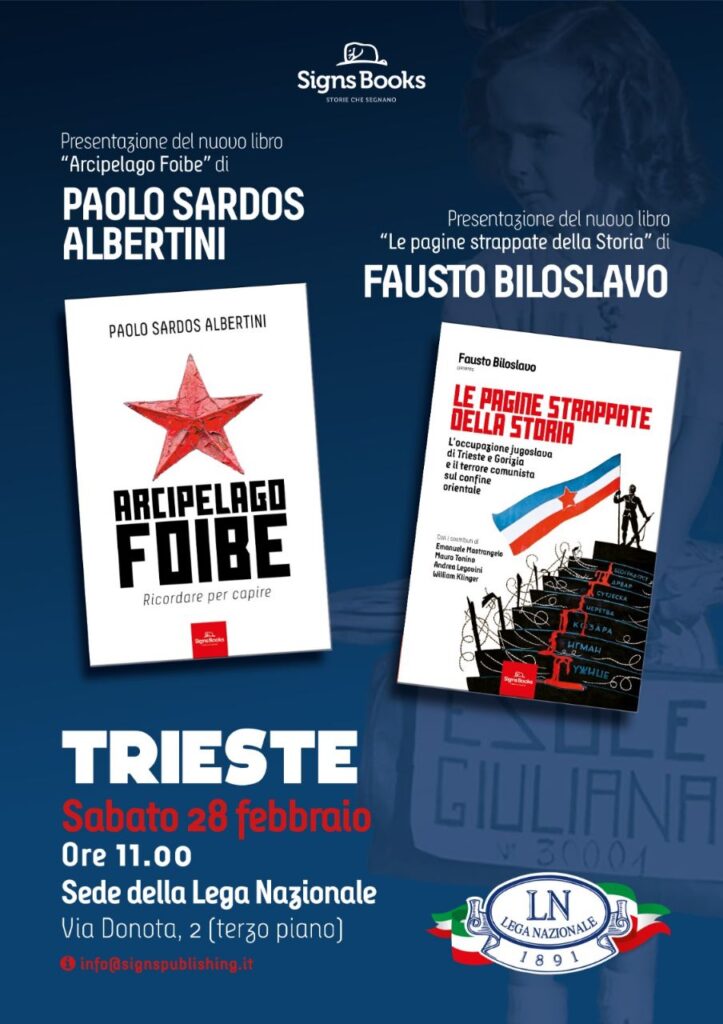 Sabato 28 febbraio 2026, alle ore 11.00, presso la sede della Lega Nazionale (via Donota 2, terzo piano – Trieste), si terrà la presentazione di due importanti pubblicazioni dedicate alla storia del confine orientale e alla memoria delle foibe.